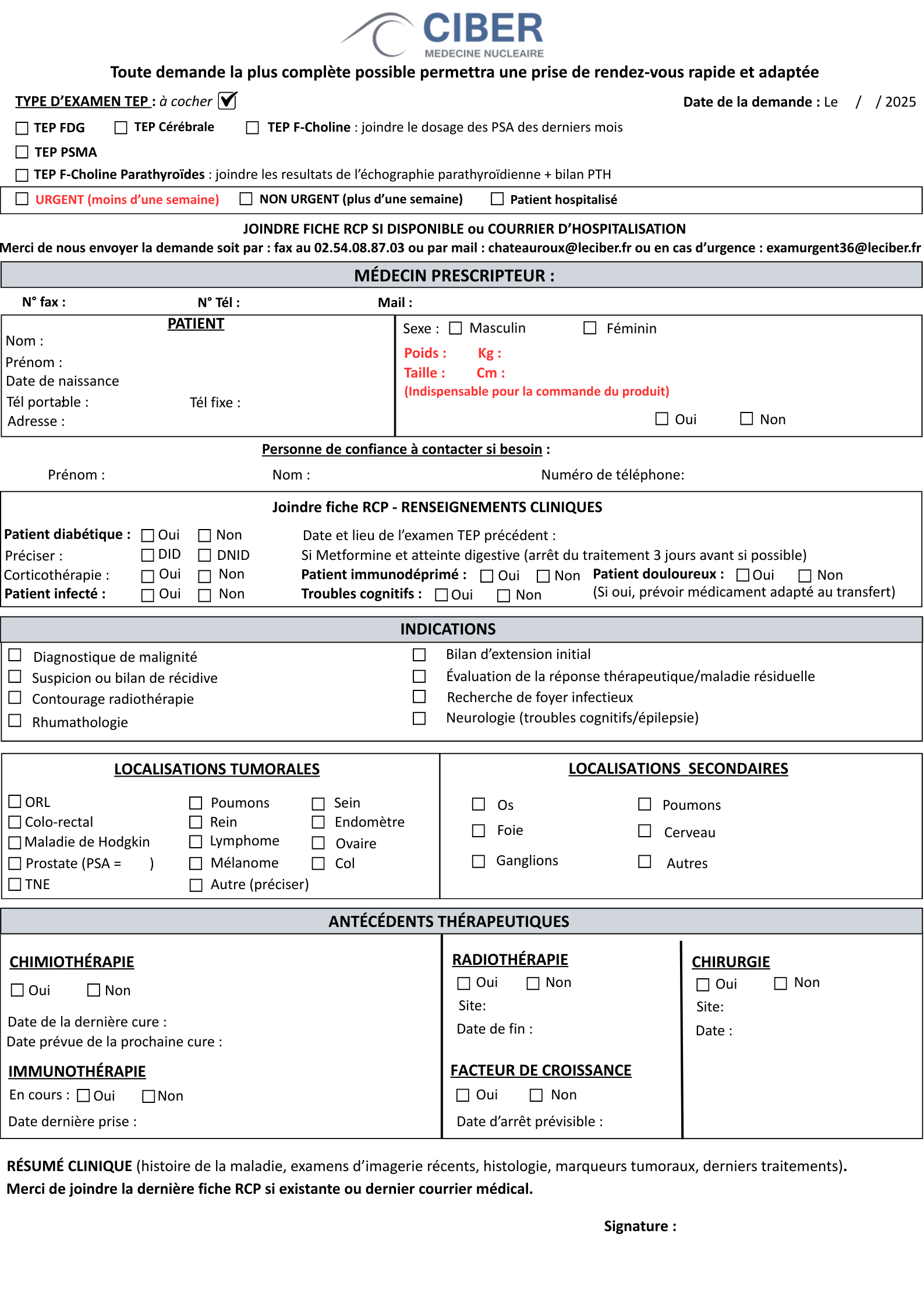 FORMULAIRES EN LIGNE : DEMANDE SCINTIGRAPHIE CHÂTEAUROUX - FORMULAIRE EN LIGNE DEMANDE TEP CHÂTEAUROUX - FORMULAIRE EN LIGNE FORMULAIRES EN PDF : DEMANDE SCINTIGRAPHIE CHÂTEAUROUX DEMANDE TEP CHÂTEAUROUX DOCUMENTS ANNEXES : RÉGIME AVANT TEP POUR RECHERCHE DE FOYER INFECTIEUX PROFOND (ENDOCARDITE, INFECTION DE MATÉRIEL, VASCULARITE…)